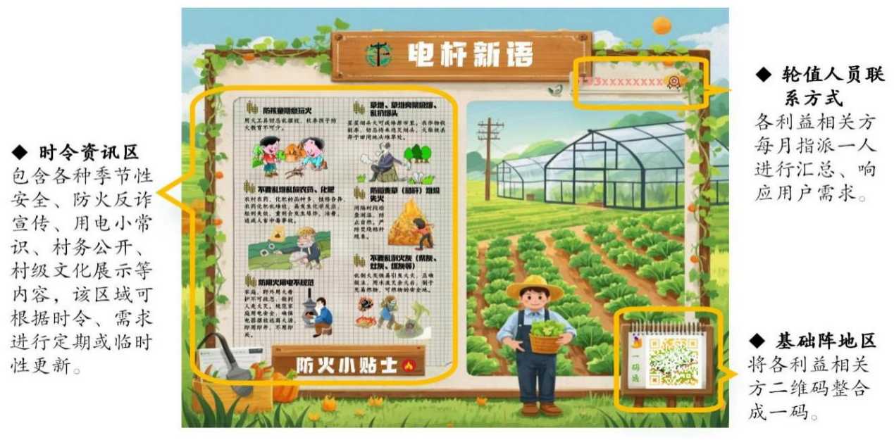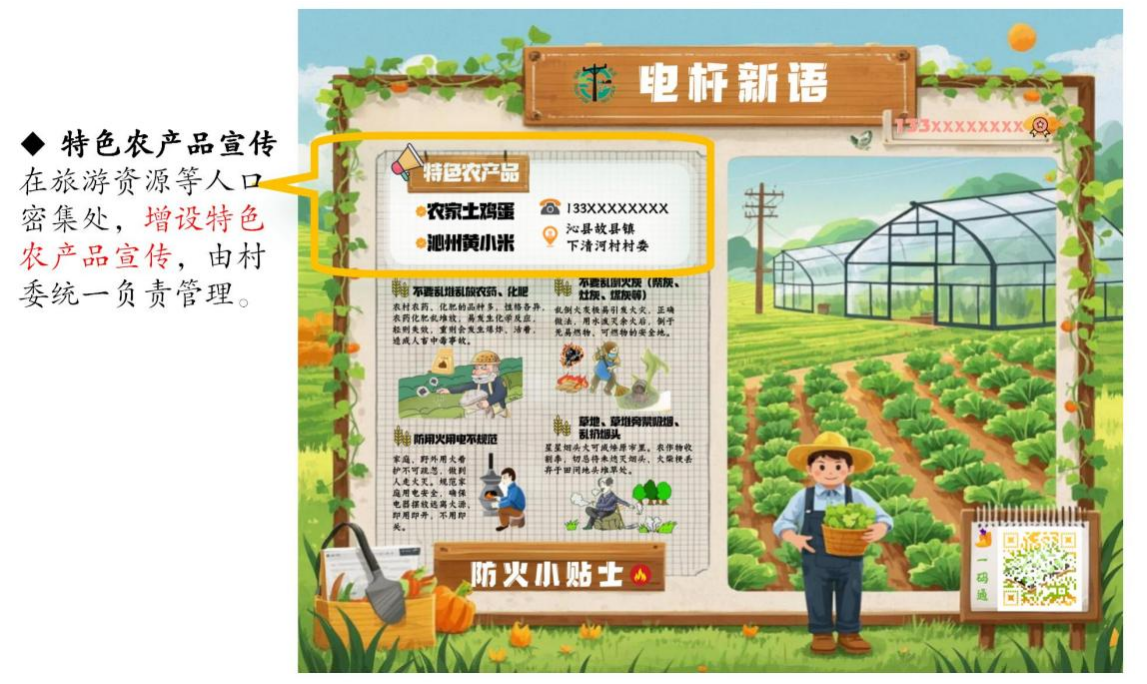 “電桿新語”建設(shè)與“一村一品牌一文化”的鄉(xiāng)村文化建設(shè)深度融合,助推鄉(xiāng)村振興再上臺階。下清河村試點實施后,解決了電桿被亂涂亂畫、張貼小廣告等影響鄉(xiāng)村美觀的問題,提升了鄉(xiāng)村環(huán)境整潔度;為村民提供便捷的大棚種植知識獲取通道,提升村民大棚種植積極性,2024年種植大棚達到50余個,人均收入達到8000元以上。同時,派出所、消防大隊通過宣傳,杜絕了該村村民被詐騙,增強了村民安全意識。